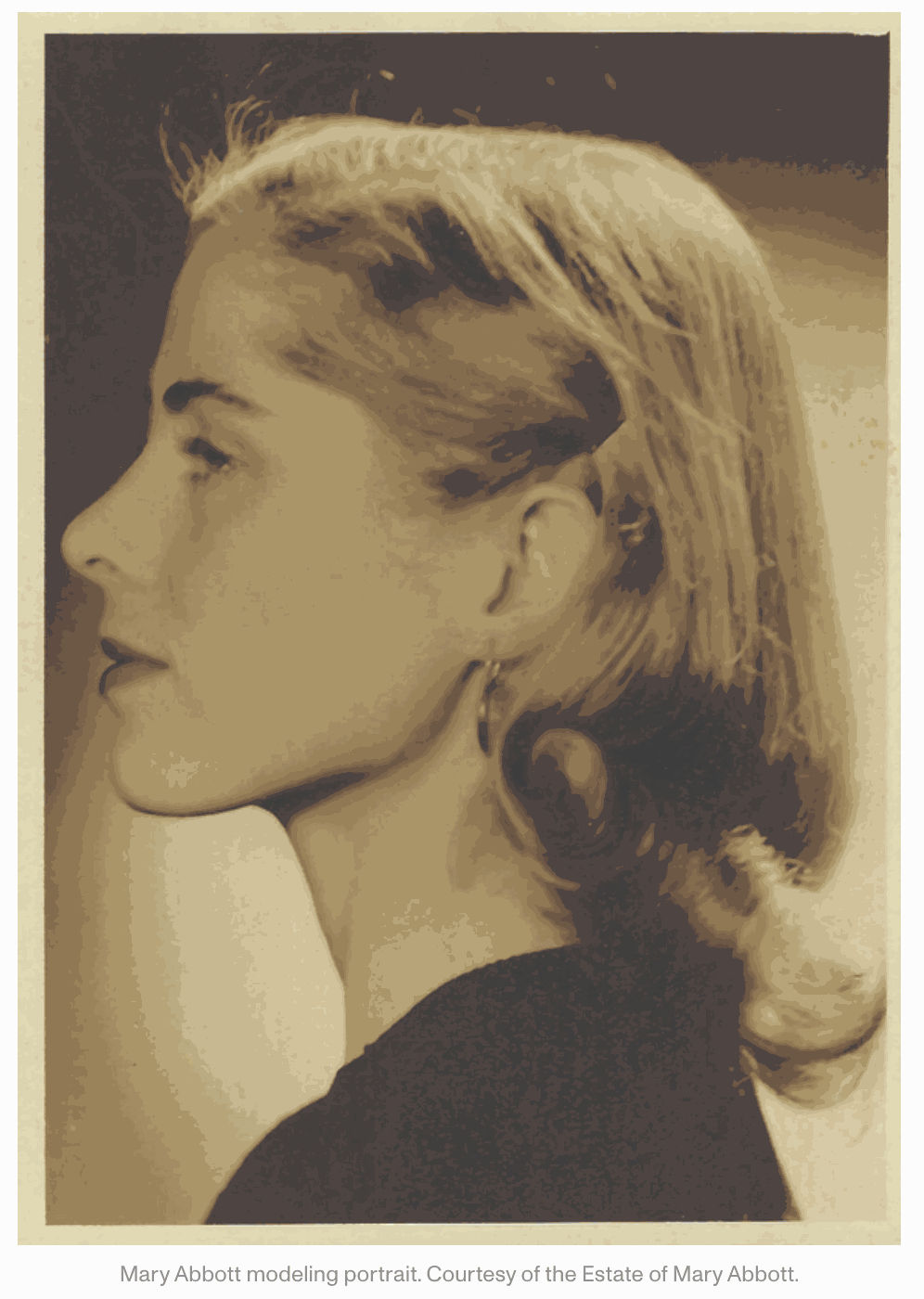 Abbott showed an early interest in art, taking her first formal art classes at the Art Students League of New York at 12 years old. She would progress as a student there, later taking advanced classes under German artist George Grosz.
