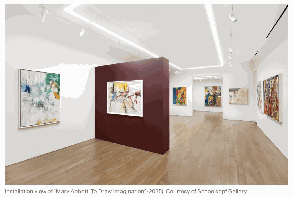 Despite the significance of her work in helping to shape American art, Abbott’s legacy has been comparatively unsung, an all-too-common experience of women artists, particularly within the context of male-dominated AbEx. New York’s Schoelkopf Gallery seeks to correct this omission with “Mary Abbott: To Draw Imagination,” a comprehensive survey exhibition on Abbott—the first for the artist—which follows the gallery announcing representation of the artist’s estate.