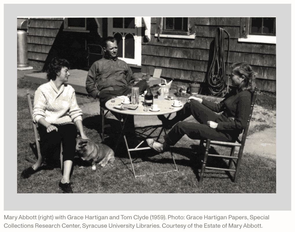 Following a brief marriage to U.S. Army Airman Rudolph Clyde, coinciding with an even briefer stint out West, in 1946, Abbott settled back in New York, this time in Lower Manhattan in an apartment on Spring Street and rented a flat and studio in the East Village. She quickly became acquainted with fellow downtown artists, including Jackson Pollock, Grace Hartigan, and Elaine and Willem de Kooning, just to name a few.