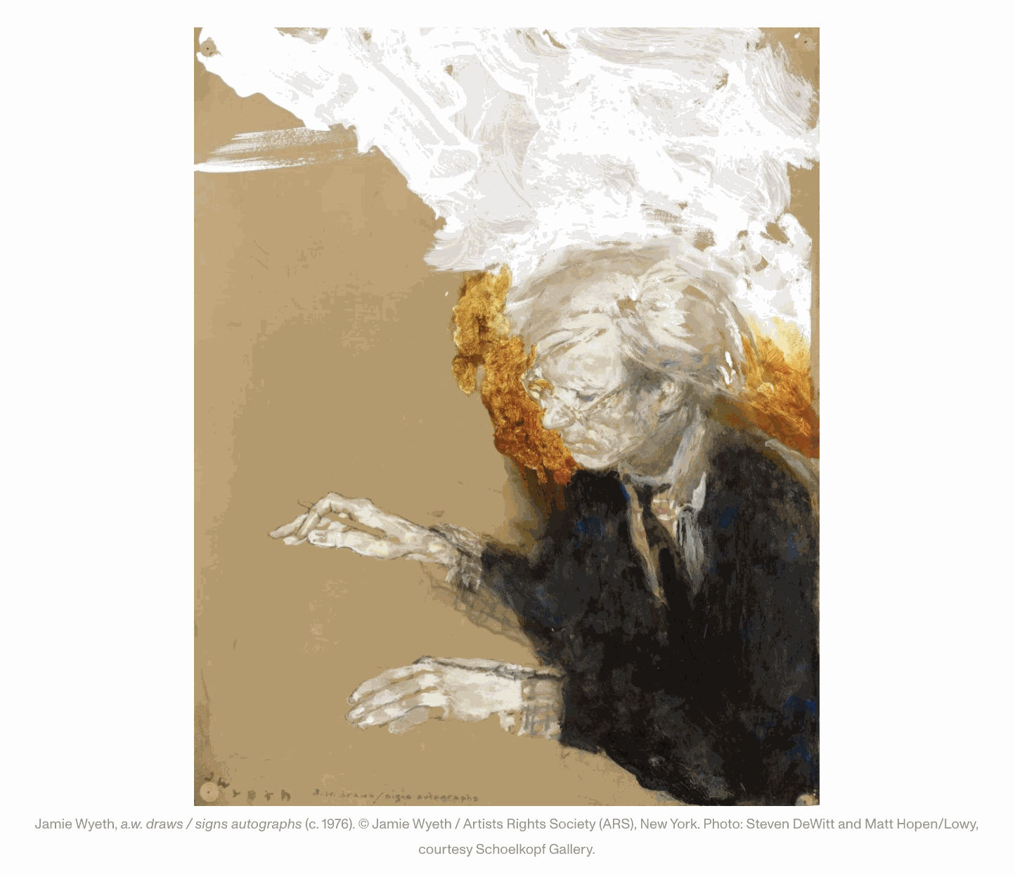 That outing emerged from Wyeth and Warhol's budding connection. However dissimilar on the surface-one the third-generation scion of a celebrated painting dynasty known for his scenes of rural Delaware and Maine; the other a Pop pioneer, who, at his New York-based Factory, crafted silkscreened critiques of consumerism-they formed a surprising kinship in the 1970s that would endure for years.